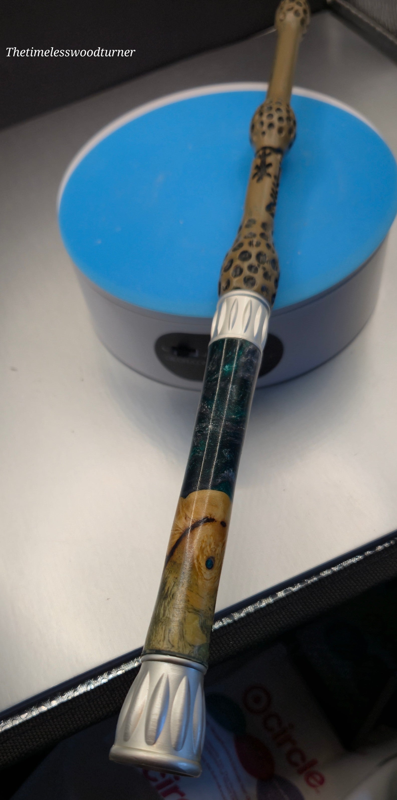 The handle is made from Burl wood with Green and silver acrylic. The wand is from the popular Harry Potter series and is the elder wand. This item is extremely fragile and not meant to be a toy. It is a collectable only.